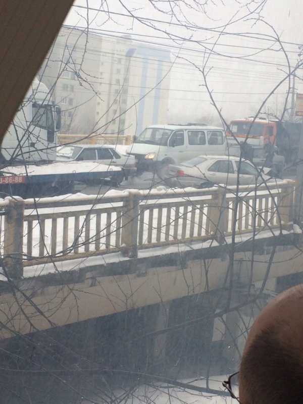 По их словам, наблюдаются 3 аварии на Ново-Астраханском шоссе на мосту через железнодорожные пути. Судя по приложенным фотографиям, речь идет о подъеме по Алтынной горе неподалеку от пересечения с улицей Крымской. На снимках видно некоторых участников аварии. К примеру, это «ВАЗ-2112» и «Шевроле Круз». На фото также запечатлены вереницы автомобилей, вставших в затор.