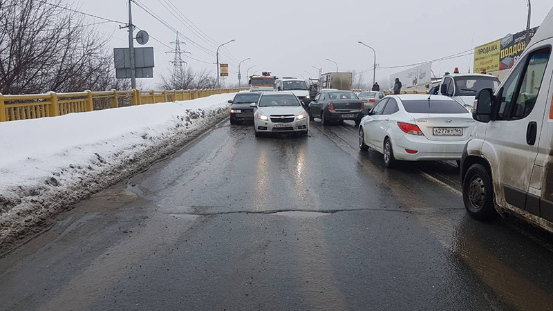 В Саратове три аварии на мосту парализовали движение по Ново-Астраханскому шоссе