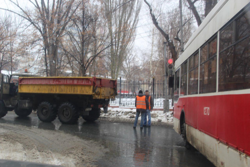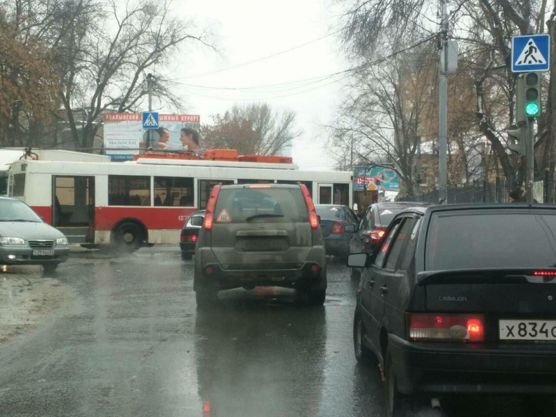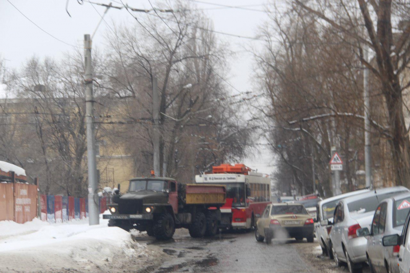 Сегодня в центре Саратова сломанный троллейбус блокировал движение по улице Рабочей.