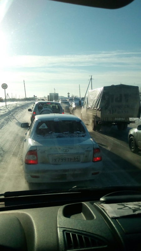 На повороте с Ново-Астраханского шоссе на Политехническую встал автовоз и перекрыл движение из Заводского района в центр. Попутно также глохнут легковушки, усугубляя обстановку. Многие жалуются, что у них сжигается весь бензин, пока они стоят в пробке, и некоторые полагают, что и их автомобили скоро заглохнут. Проспект Энтузиастов, улицы Авиастроителей и Орджоникидзе по факту превратились в одну сплошную пробку, где движение не более 3 км/ч.
