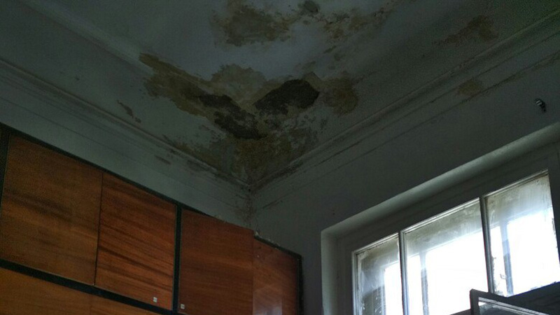 На опубликованных снимках видно, что потолок в одной из аудиторий находится в плачевном состоянии. На другой фотографии запечатлено, что на полу и парте валяются куски обвалившейся штукатурки.