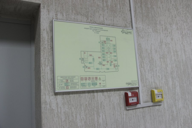 В торговом центре «Форум» на Сенном все оказалось иначе. На входе на журналиста, интересующегося, где находится руководство, обратил внимание сотрудник охраны. Он попросил предъявить документ, удостоверяющий, что перед ним пресса, и затем провел нас в отдельное помещение, откуда позвонил руководству. Затем к корреспонденту спустился замгендиректора торгового центра по общим вопросам Александр Липовский, он охотно рассказал о противопожарной готовности и системе эвакуации людей при экстренной ситуации.