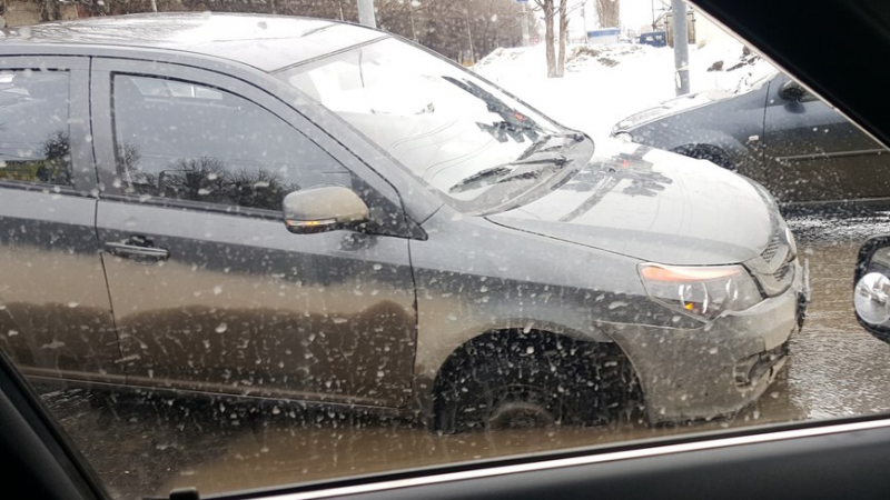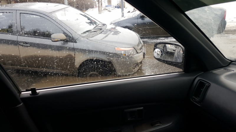 В Саратове автомобили проваливаются в затопленные водой ямы на дорогах