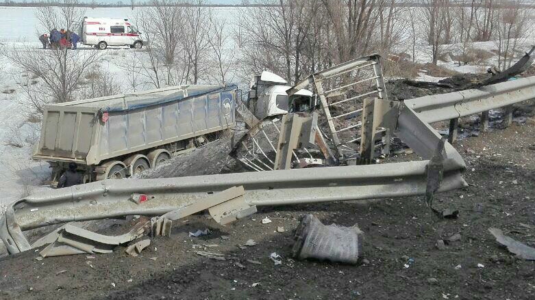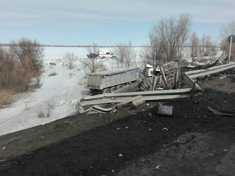 Сегодня около 11.15 в Марксовском районе Саратовской области большегруз снес дорожное ограждение. Предположительно, это произошло из-за лопнувшего колеса.