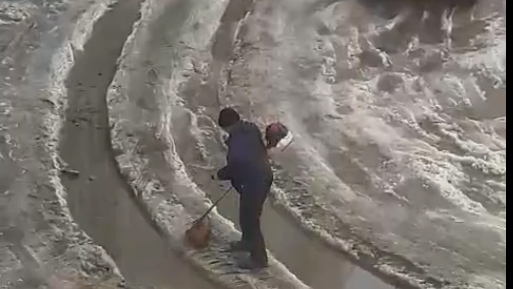 В Саратове дворник для борьбы с наледью на дорогах использует триммер-косилку для травы. О новых методах поведал Евгений Морозов. Он снял на видео процесс удаления льда и выложил его на странице «Саратов онлайн» соцсети «ВКонтакте».