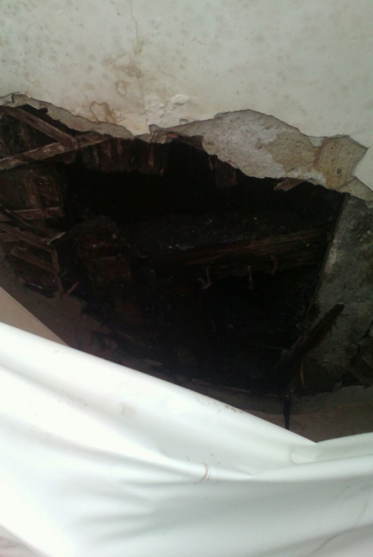 В пресс-службе городской службы спасения рассказали «Четвертой Власти», что вчера около 9.35 поступил сигнал об обрушении по указанному выше адресу. Прибывшие специалисты обнаружили, что штукатурка и часть перекрытия значительных размеров повисли на натяжном потолке. Спасатели вскрыли потолок и вытащили камни. При этом дыра в потолке образовалась сквозная.