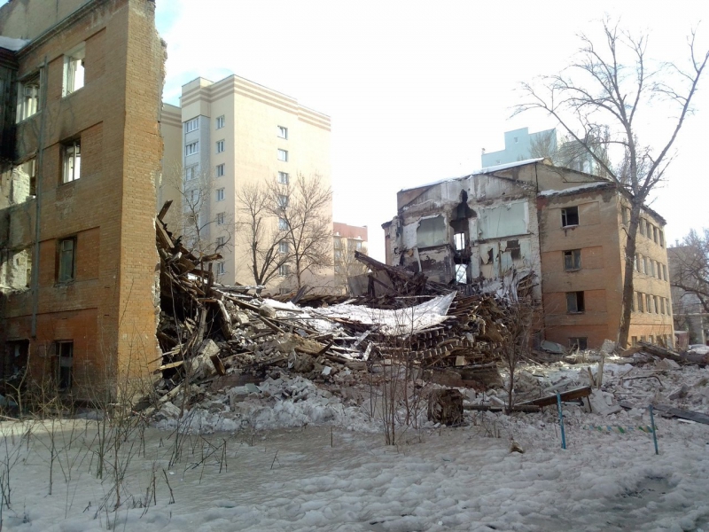 В Заводском районе рухнул расселенный 4-этажный дом. Видео