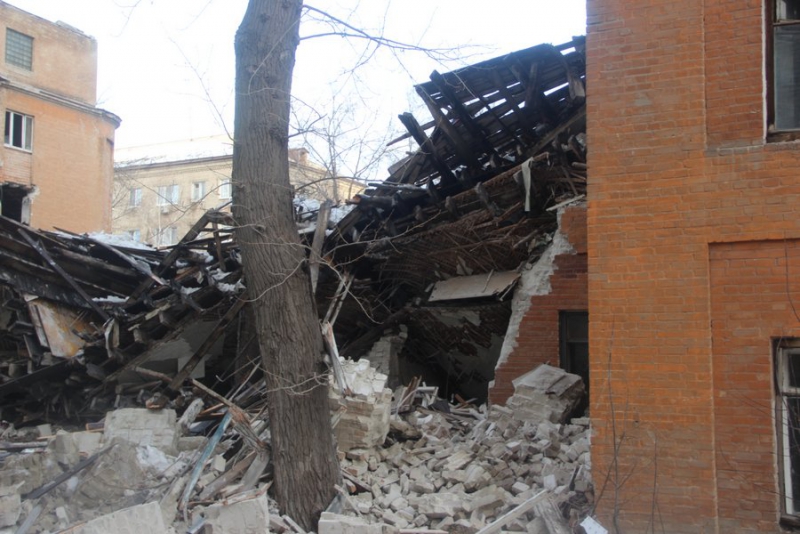 Неподалеку от рухнувшего сегодня дома №10 на улице Киевской в Саратове постепенно разрушается другой дом - №12 на проспекте Энтузиастов.