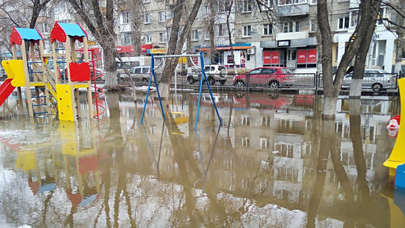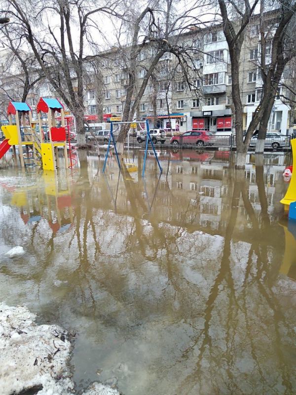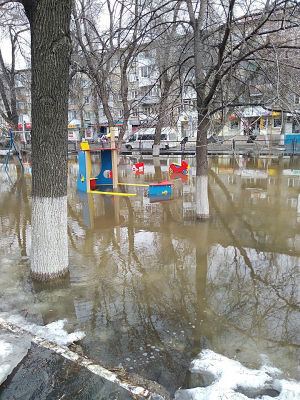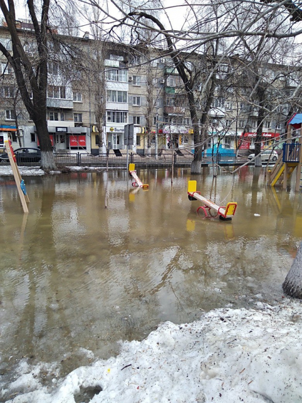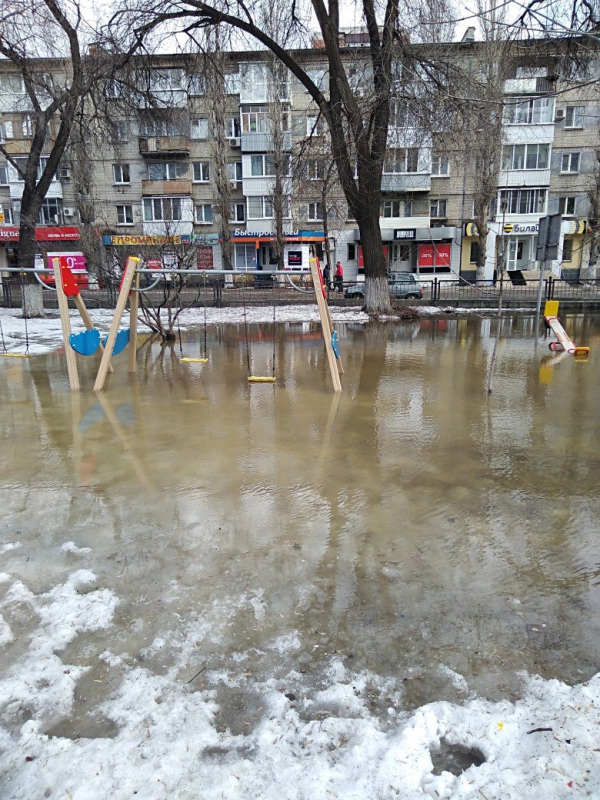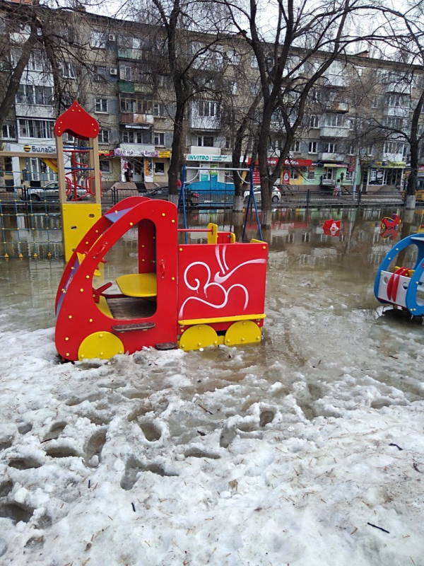 «Детские площадки в Саратове настолько суровы, что по весне превращаются в детские аквапарки», - подписал выложенные в сеть снимки автор поста.