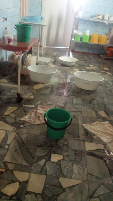 Петровчане прислали в редакцию несколько снимков, которые были сделаны на днях якобы в помещении реанимации местной больницы. На изображениях видно протекающие потолки, обвалившуюся с них побелку и расставленные на полу ведра, куда стекала вода.