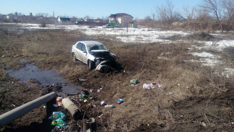 Автоледи на «Логане» снесла столб в Октябрьском районе