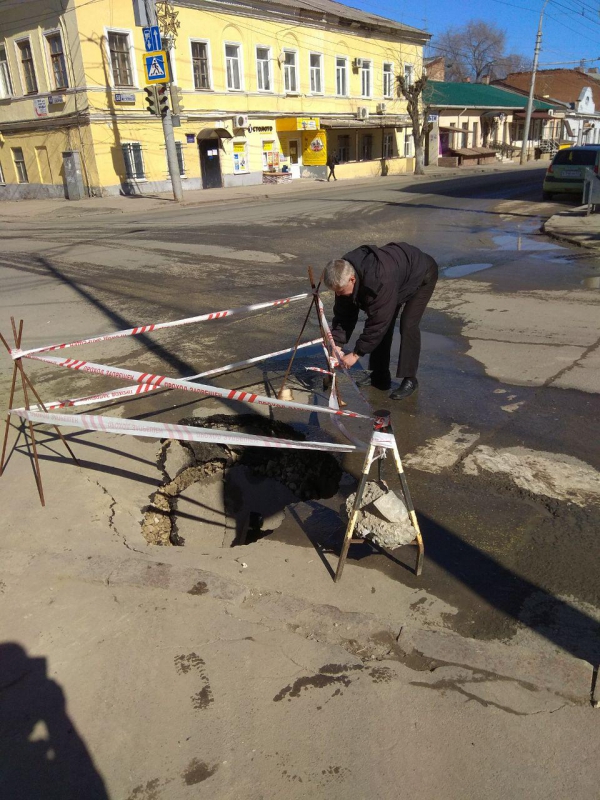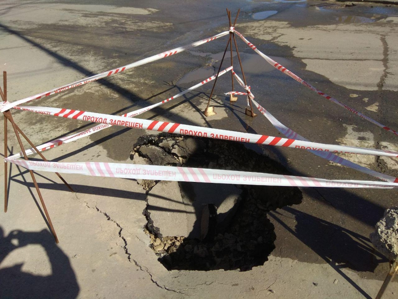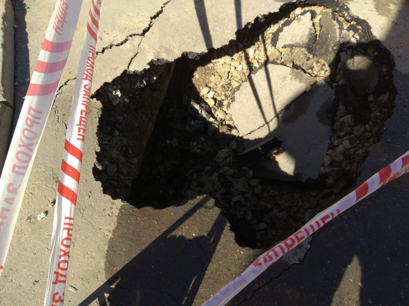 Без посторонней помощи через некоторое время водителю удалось выехать из провала. Место просадки грунта огородили лентами. Для движения свободной осталась одна полоса.