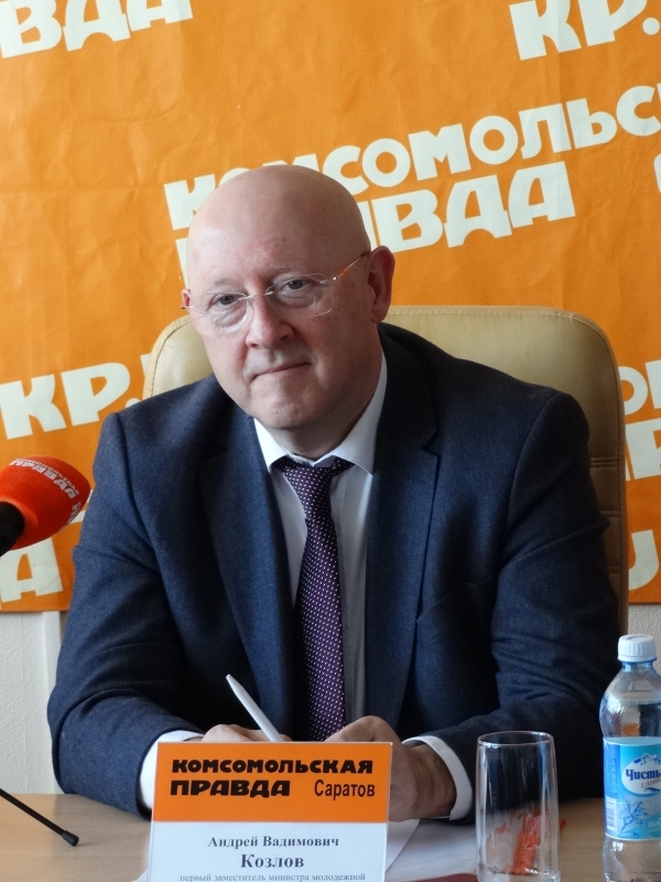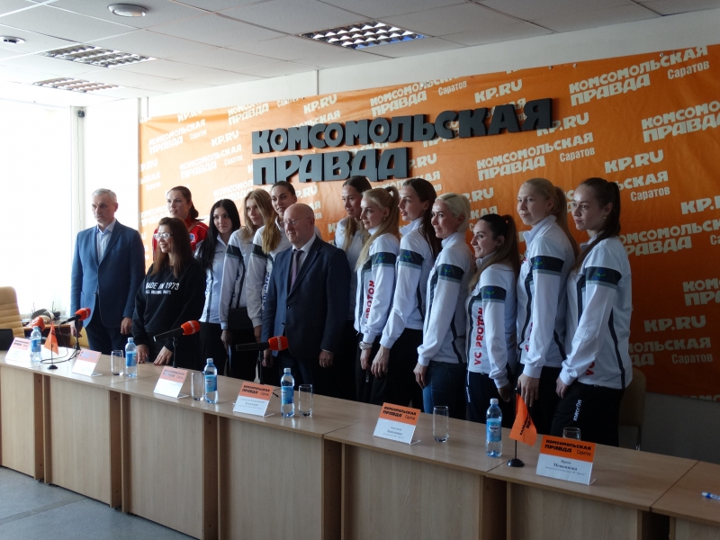 Пресс-центр «КП в Саратове» оказался заполнен - пообщаться с представителями волейбольного клуба собралось порядка 50 человек. На вопросы отвечали главный тренер команды Юрий Маричев, ее капитан Екатерина Орлова, председатель правления клуба Станислав Кукушкин и первый заместитель министра молодежной политики и спорта Андрей Козлов.