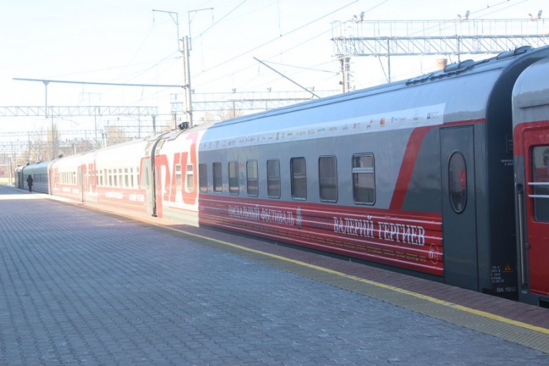 Сегодня на саратовском вокзале делегация местных чиновников встретила руководителя Мариинского театра Валерия Гергиева. Маэстро приехал с симфоническим оркестром, чтобы провести сегодня концерт в рамках XVII Московского Пасхального фестиваля.