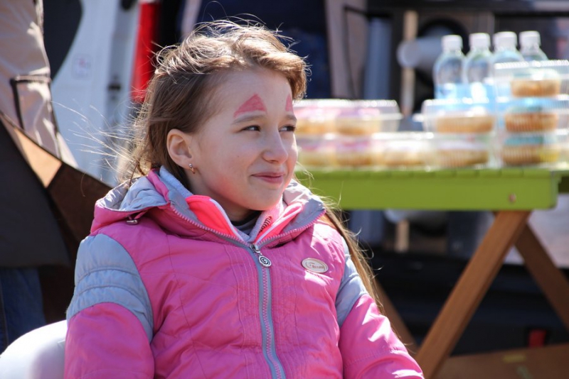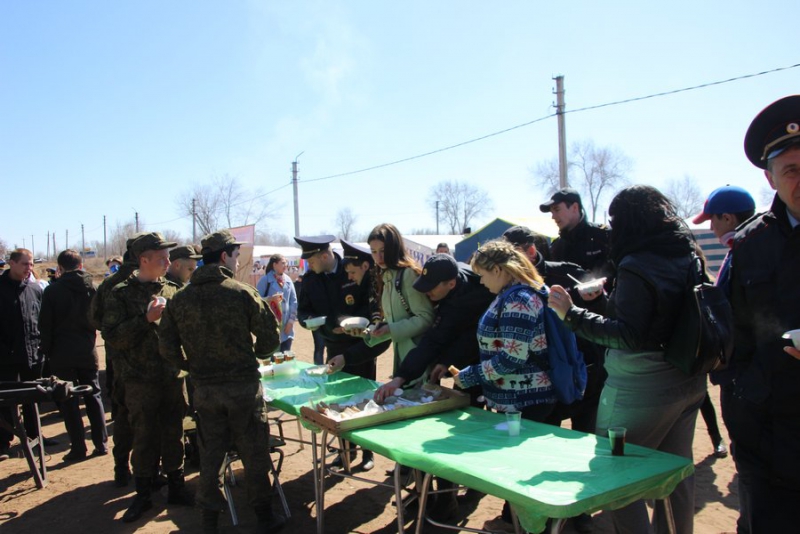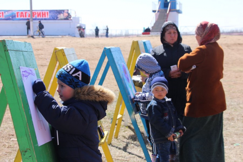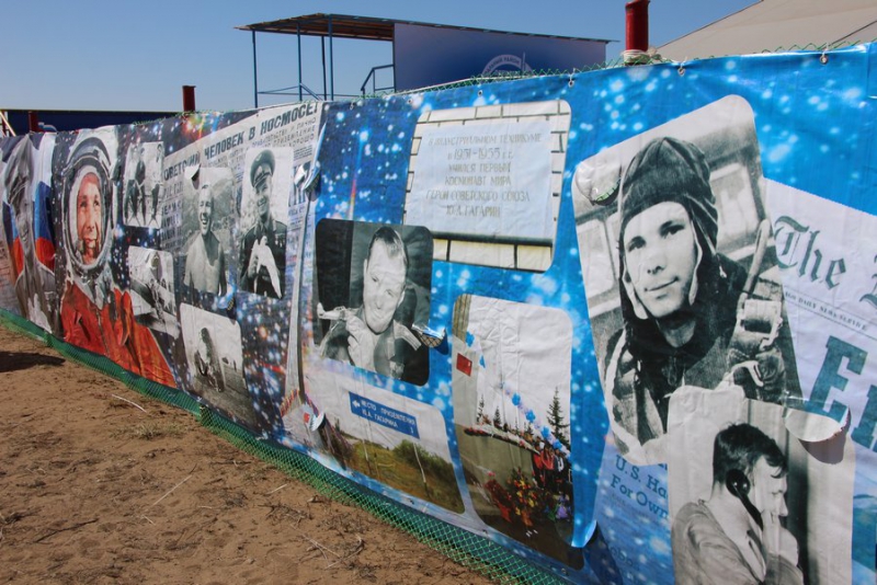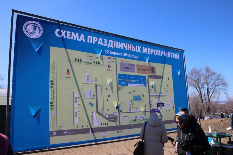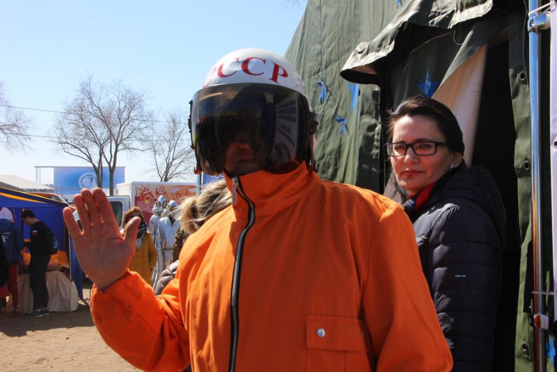 Несмотря на прохладную погоду и сильный ветер, на поле много людей, в том числе большинство пришло целыми семьями. Прямо в поле развернули кинотеатр «Звездный». Там показывают фильм о первом космонавте