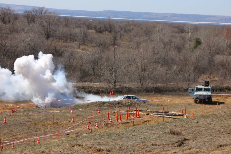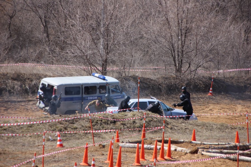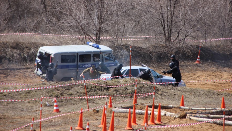 На глазах у зрителей отряд ОМОНа «обезвредили» особо опасных преступников, догнав условных террористов на «буханке».