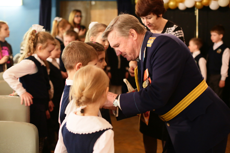 В торжественной обстановке школьников приняли в дружину «Юных Гагаринцев», почетные гости прикрепили им на форму памятные значки. А танцевальная группа из Дома творчества Волжского района показала несколько номеров.