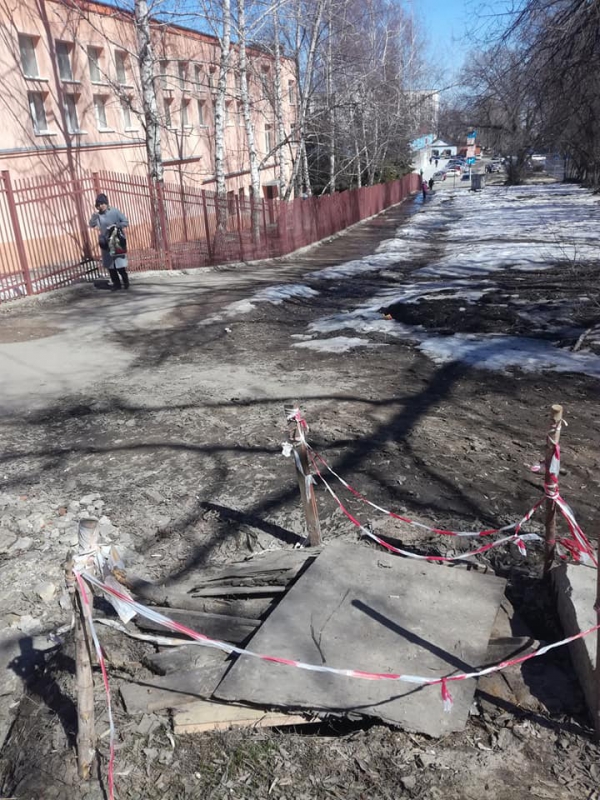 Речь идет о пересечении улиц Дубовикова и Тверской. Недалеко от этого места находится Детская музыкальная школа №3. По словам мужчины, первый люк расположен посередине дороги на улице Дубовикова. Его прикрыли пластиковым ограждением. На тротуаре второй колодец. Его огородили сигнальной лентой. Третий заполнен льдом и прикрыт автомобильной покрышкой на газоне.