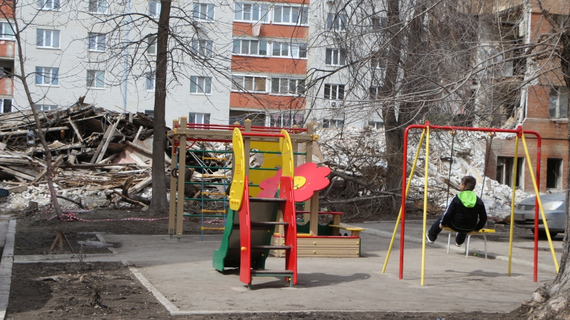 Останки дома №10 по улице Киевской в Саратове раскидали у детской площадки и не стали убирать. Это сегодня выяснил корреспондент «Четвертой Власти», побывавший на месте.