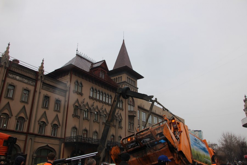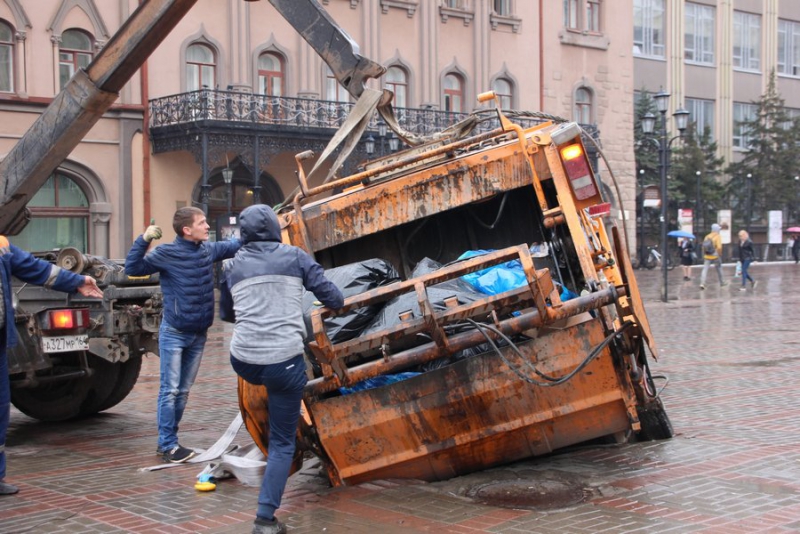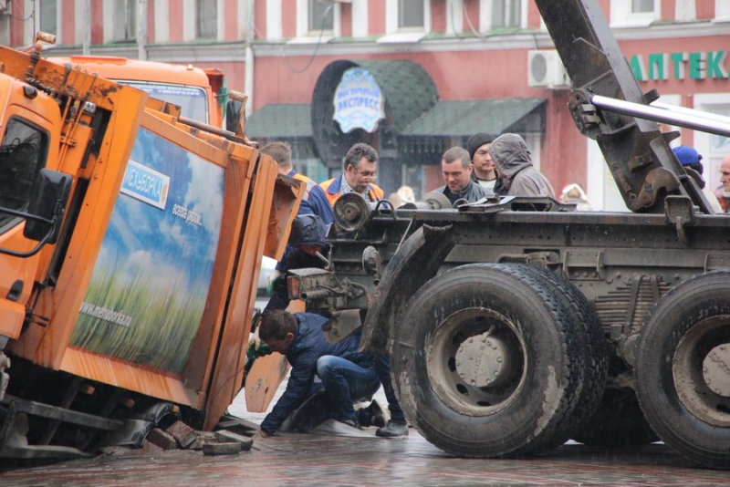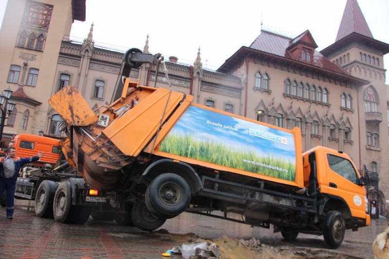Машину смогли достать из провала лишь со второго раза. Сначала подъехавший кран «Мехуборки» подцепил заднюю часть автомобиля на трос и стал поднимать. Но трос не выдержал и порвался. Спустя некоторое время подъехал «КамАЗ», который привез другое снаряжение. При помощи крана его наконец достали из провала. Затем мусоровоз покинул место ЧП. Всего, по оценке журналиста, в операции по спасению транспорта принимали участие 10 человек.
