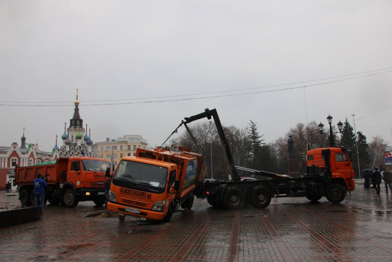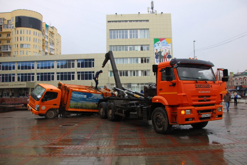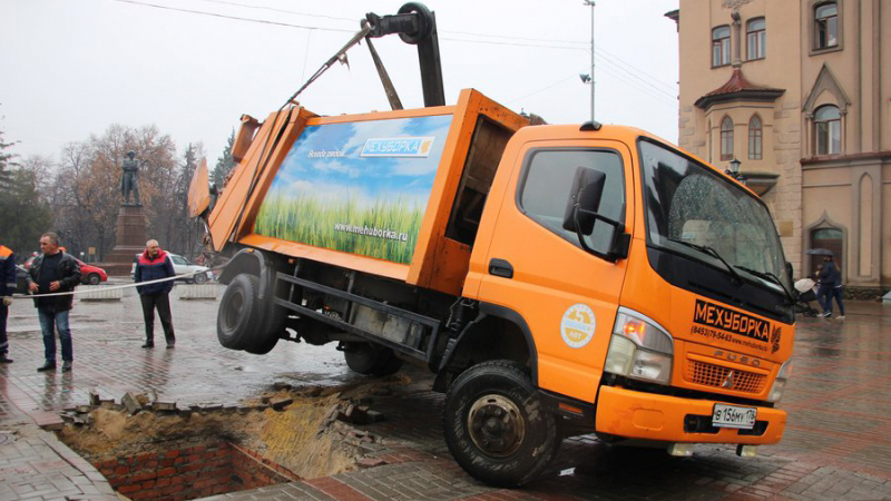 В Саратове со второй попытки достали мусоровоз из провала у консерватории