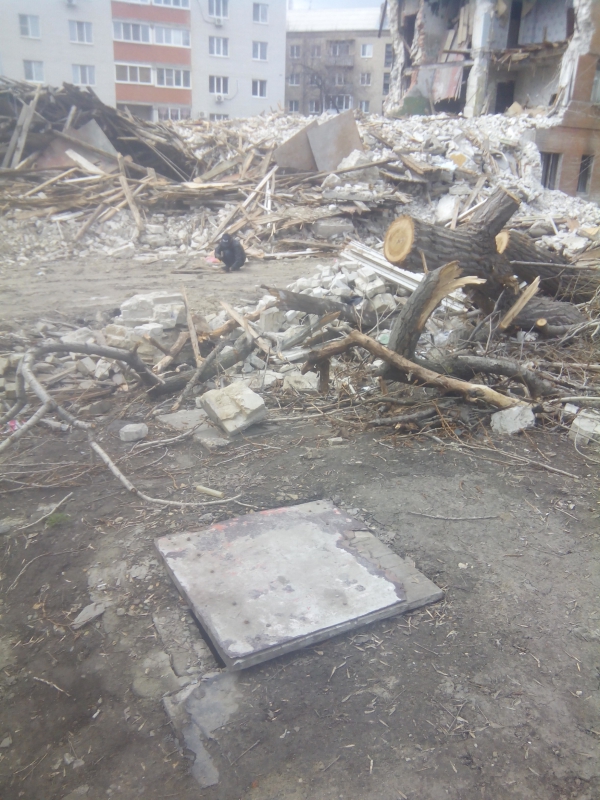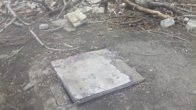 На прошлой неделе корреспондент «4В» побывал у дома №10 по Киевской, рухнувшего 2 апреля, и выяснил, что руины никто не вывез. Кроме этого обнаружилось несколько открытых коллекторов рядом с опасным объектом.