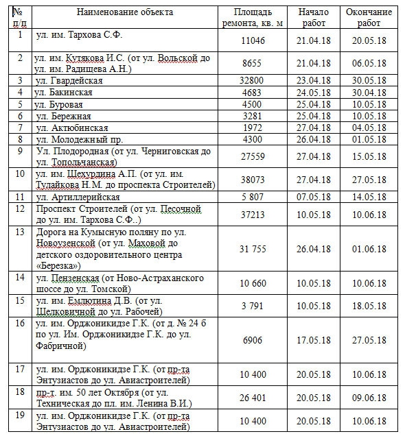 Саратовцы могут сами следить за соблюдением графика ремонта дорог. Мэрия обнародовала расписание проведения работ в апреле и мае.