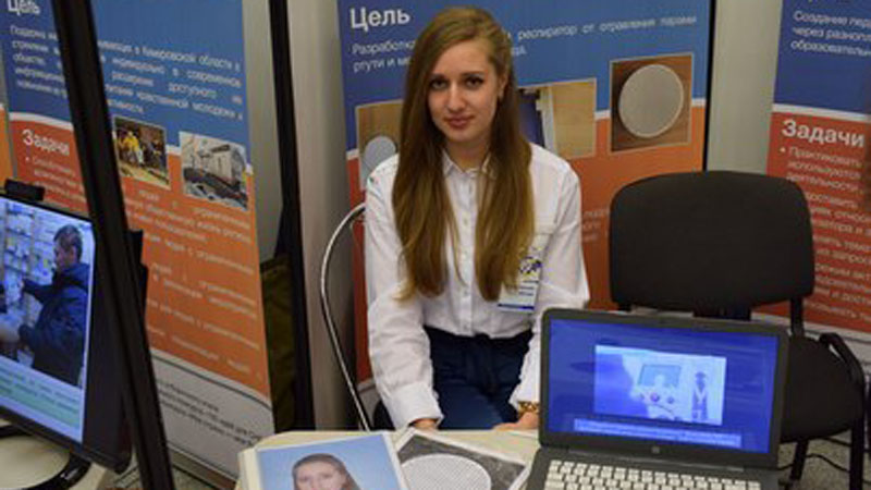 Юлия презентовала разработку «Защитная маска и респиратор с 3D насадкой от отравления парами ртути». Студентка предложила принципиально новый механизм защиты органов дыхания. «Моя разработка представляет собой специальную маску и респиратор с двумя слоями сетки – стальной и медной. Эти слои предназначены для задержания паров ртути и отталкивания угарного газа. Насадка на респиратор, содержащая биоразлагаемый полимер, изготавливается на 3D принтере, что делает экономичным ее массовое производство», - рассказывает Юлия.