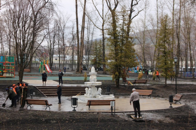 Как сообщает корреспондент с места событий, сейчас в парке благоустраивают территорию после зимы. Вывезен мусор, очищены дорожки, расконсервированы фонтаны и памятник купцу-меценату Петру Сапожникову.