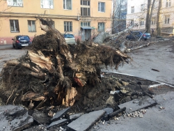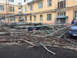 Так, иномарку смяло рухнувшим тополем во дворе дома на Саперной, при этом ветки повредили и стоящее рядом авто. На углу Измайлова и Загороднего упавшее дерево перегородило дорогу.