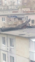 У многоэтажки по адресу Южная, 42 ветер сорвал часть крыши и закатал в рулон.