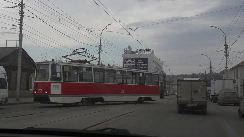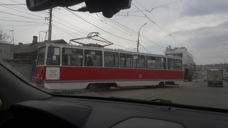 Сегодня днем в Саратове в районе 1-й Садовой трамвай 11-го маршрута слетел с рельсов и остановился посреди дороги.