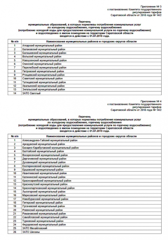 Так, в этом году единые нормативы вводятся в тех районах, где нововведение должно способствовать снижению платы. С 1 июня это коснется жителей 14 районов - Аткарского, Балаковского, Балашовского, Вольского, Новоузенского, Озинского, Перелюбского, Петровского, Ртищевского, Советского, Татищевского, Хвалынского, Энгельсского районов и АТО «Светлый».