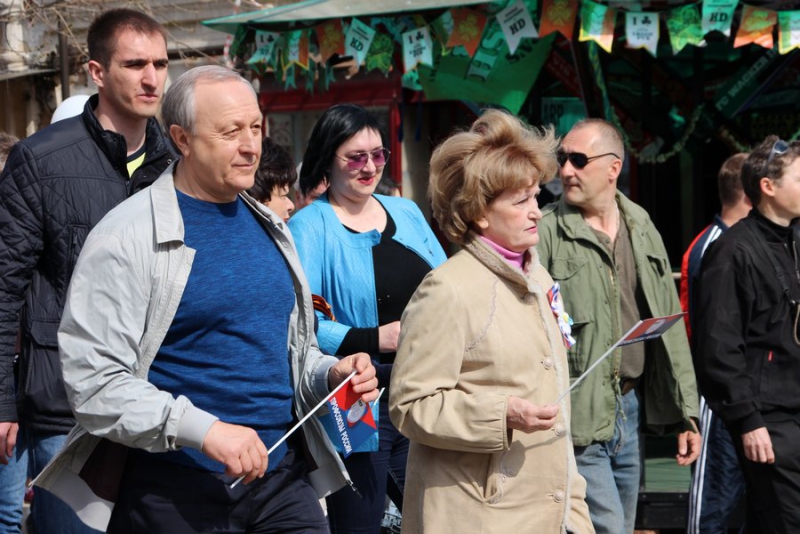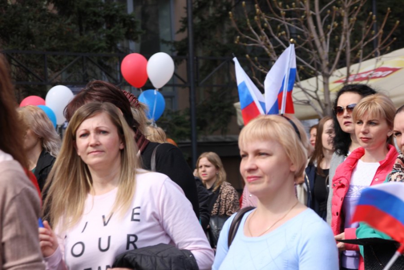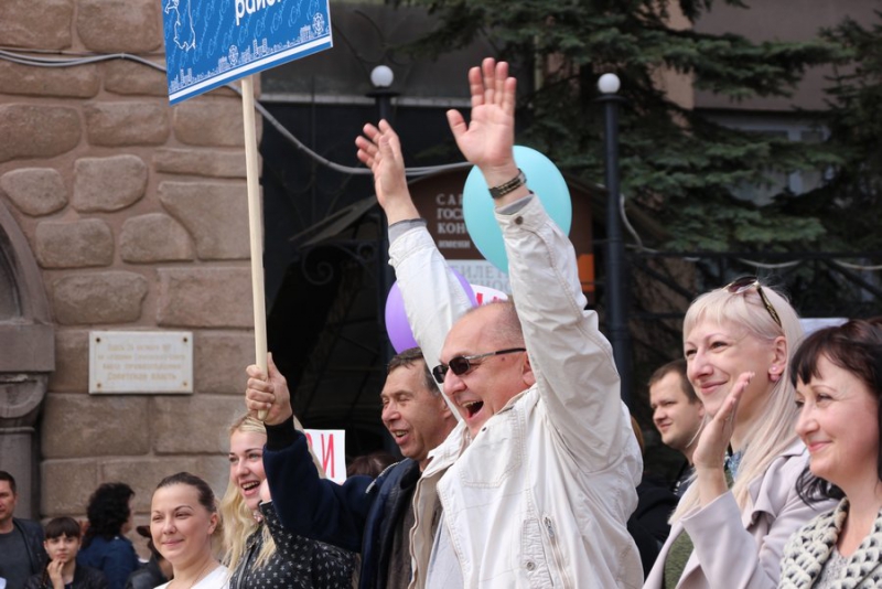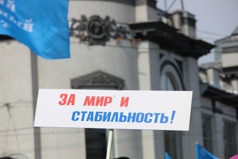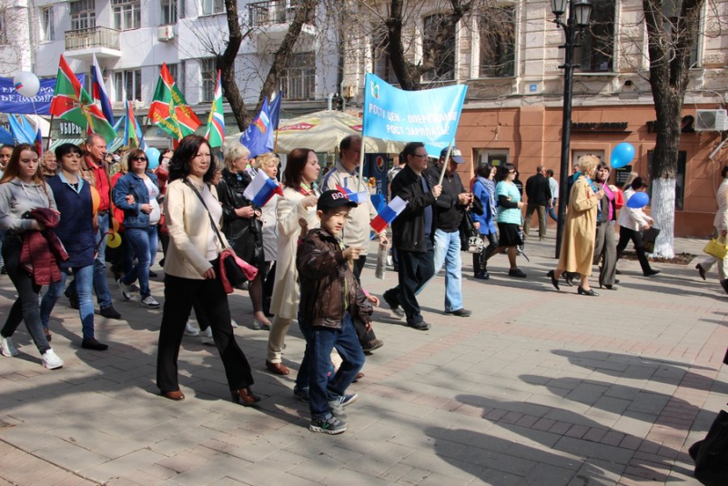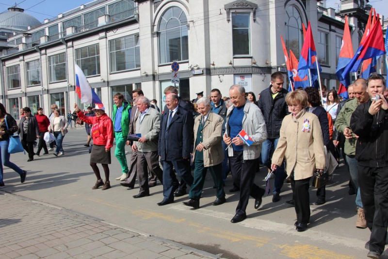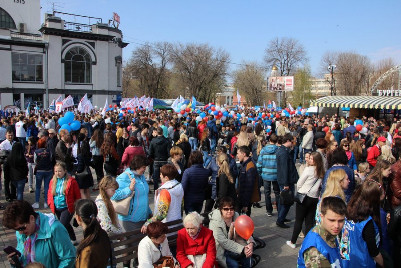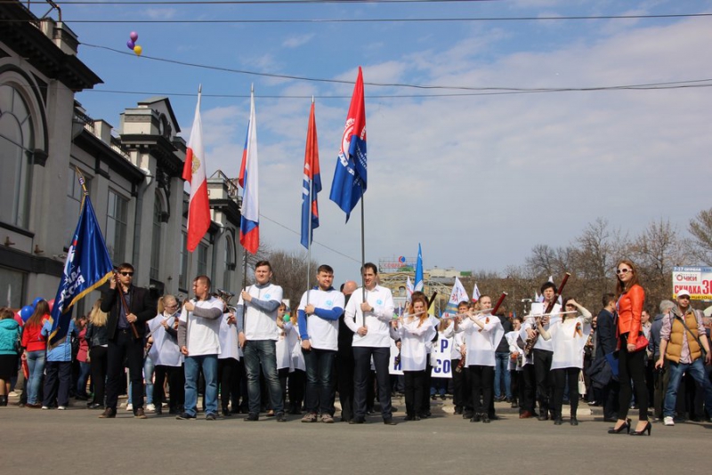 Отметим, что никаких выступлений не было. Около здания консерватории развернули сцену, с которой собравшихся приветствовал глава региона и другие официальные лица области и города. Ведущие мероприятия зачитывали лозунги вроде «Молодым – работа, пенсионерам – забота!», «Законность! Занятость! Зарплата!», «Когда мы едины – мы непобедимы!».