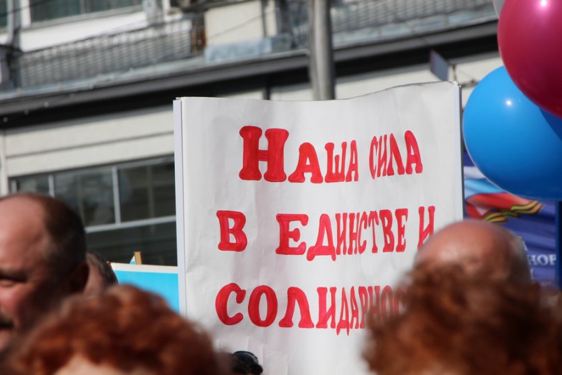 Профсоюзы устроили демонстрацию против терроризма и за зарплату