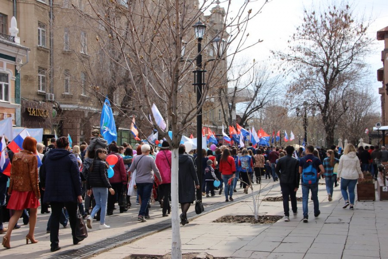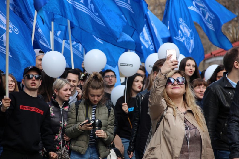 Колонны стартовали от площади Кирова по проспекту до площади перед консерваторией. Возглавлял колонну трудовых коллективов региона и общественников губернатор Саратовской области Валерий Радаев, кроме него в толпе были замечены глава Саратова Михаил Исаев, председатель областной думы Иван Кузьмин, чиновники и общественники. Некоторые из них пришли с семьями.