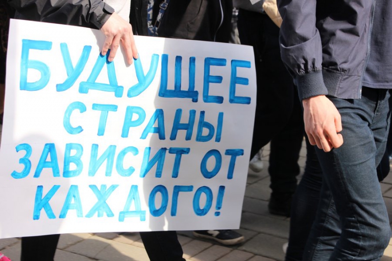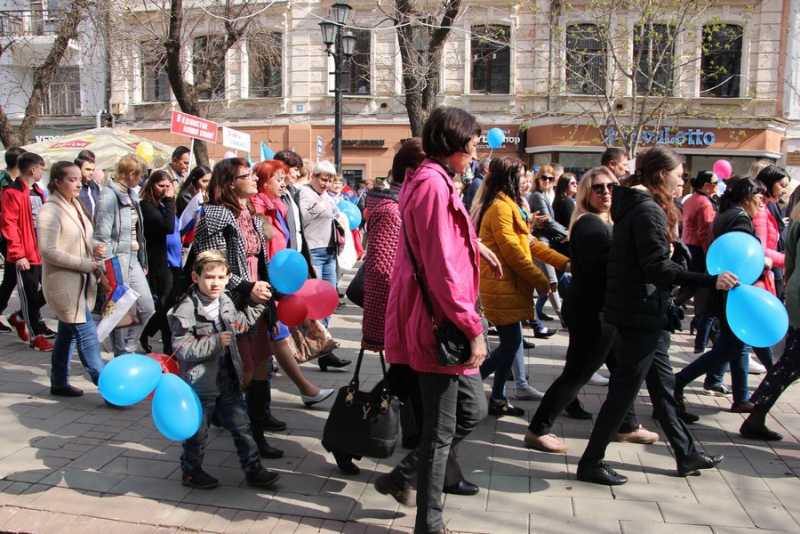 Люди несли в руках плакаты с традиционными лозунгами: «Нет терроризму», «Минимальную заработную плату - на уровень прожиточного минимума», «Реформы для народа, а не за счет народа», «Росту цен - удвоение зарплаты», «Молодым работу, пенсионерам заботу».