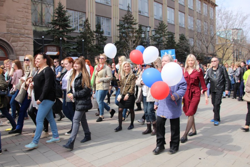 По пути на проспекте демонстрантов встречали танцевальные и песенные коллективы.