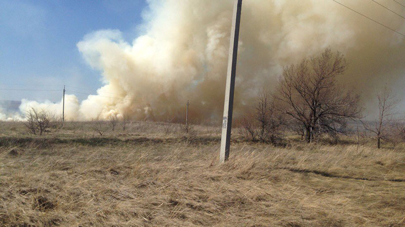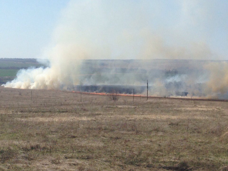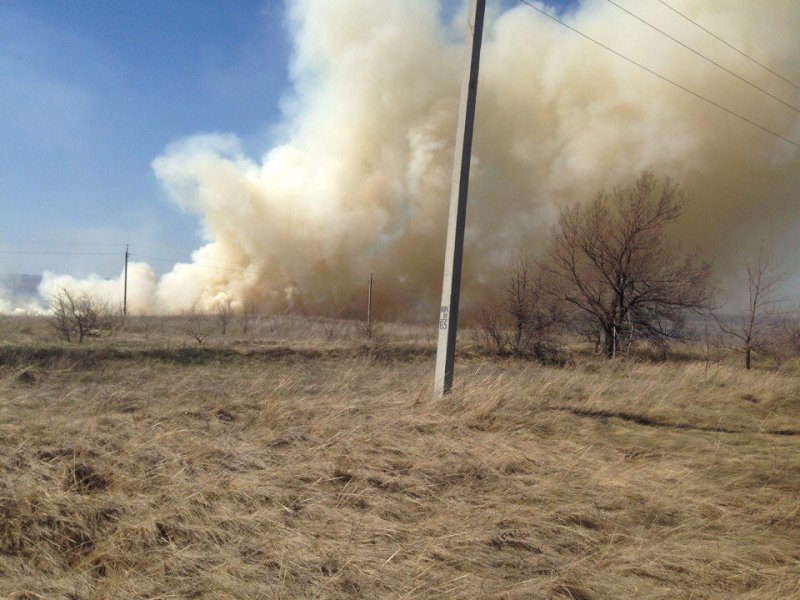 «Пожарных нет уже 1,5 часа, огонь только усиливается», - подписал он сделанные с места снимки. На видно густой дым неподалеку от дороги и расстилающееся по полю пламя.