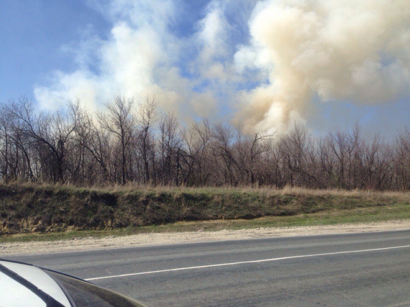 В Саратовском районе на трассе по направлению к Волгограду горит трава. Об этом в соцсетях в группе «Саратов лайф» сообщил очевидец.