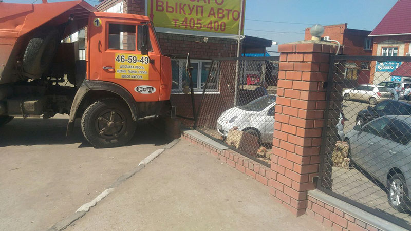 «КамАЗ» врезался в ограду авторынка и повредил 3 машины