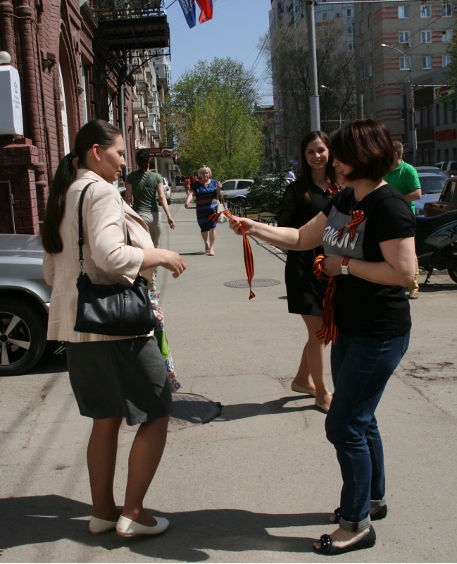 Сотрудники водоканала раздали саратовцам георгиевские ленточки