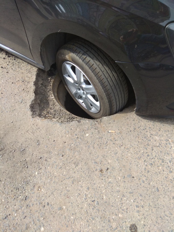 Напомним, что 3 мая «Ниссан», поворачивая с Челюскинцев на Комсомольскую, продавил асфальт, под которым находился прикрытый досками колодец. На следующий день в эту ловушку угодили еще 2 машины. По словам очевидца, провалившийся «Фольскваген» также стал второй «жертвой». Таким образом, известно о 5 пострадавших авто.