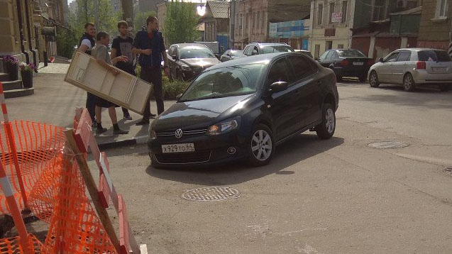 Сегодня в Саратове в открытый колодец на пересечении улиц Челюскинцев и Комсомольская провалился пятый автомобиль.