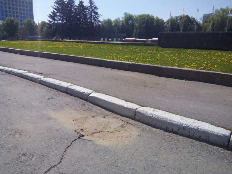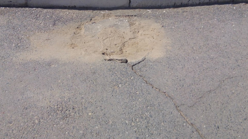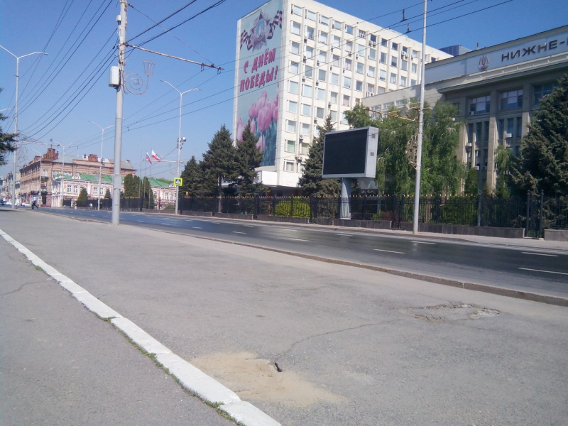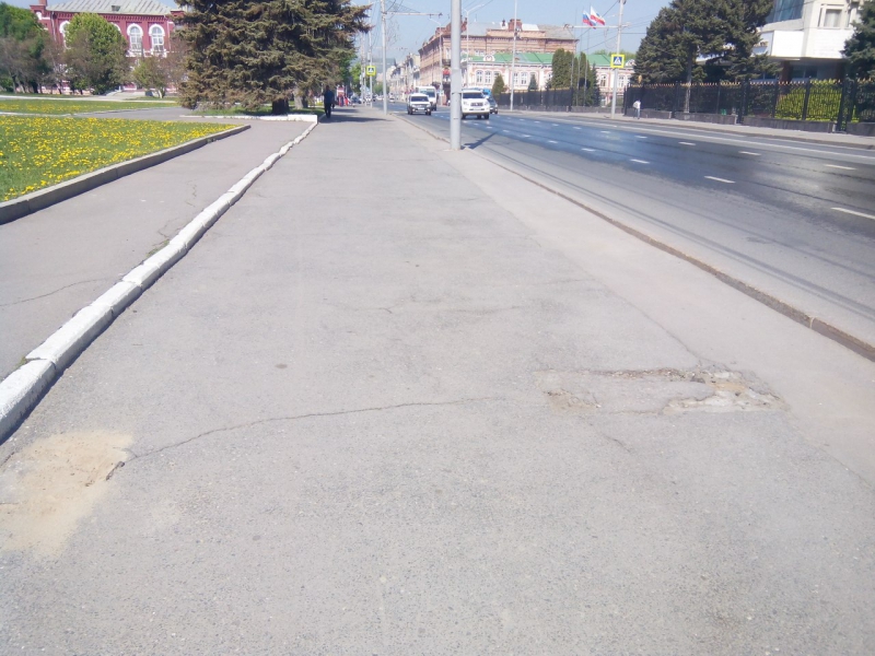 Провал в асфальте на пешеходном переходе рядом с памятником Ленину был замечен 18 апреля. Тогда блогер-общественник Павел Галактионов заявил, что чуть не повредил ногу из-за провала на улице Московской. Шло время, дыра увеличивалась в размерах, и в начале мая ее все-таки огородили. Перед днем Победы неизвестные привязали к деревянному заборчику георгиевскую ленточку. Сейчас же провал наконец-то заделали. Дыру закрыли кусками асфальта и засыпали сверху песком.