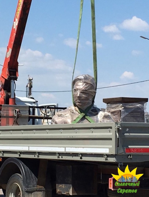 Тем не менее, в соцсетях уже появились снимки памятника и процесса его установки. На фотографиях видно, что бюст расположили на одной из площадок бульвара при помощи автокрана-манипулятора. На постаменте нанесены даты рождения и смерти уроженца Саратовской губернии, дважды Героя Советского Союза, заслуженного военного лётчика СССР. Кроме этого, из надписи можно узнать, что он является даром автора проекта «Аллея Российской Славы» Михаила Сердюкова. На сайте проекта говорится, что скульптуры и бюсты великих людей России изготавливаются в его мастерской из бронзы, а также железобетона, окрашенного под бронзу, медь и антик. Особенностью исполнения монументов являются нанесенные на постаменте с 3-х сторон слова о деяниях прославленного гражданина.