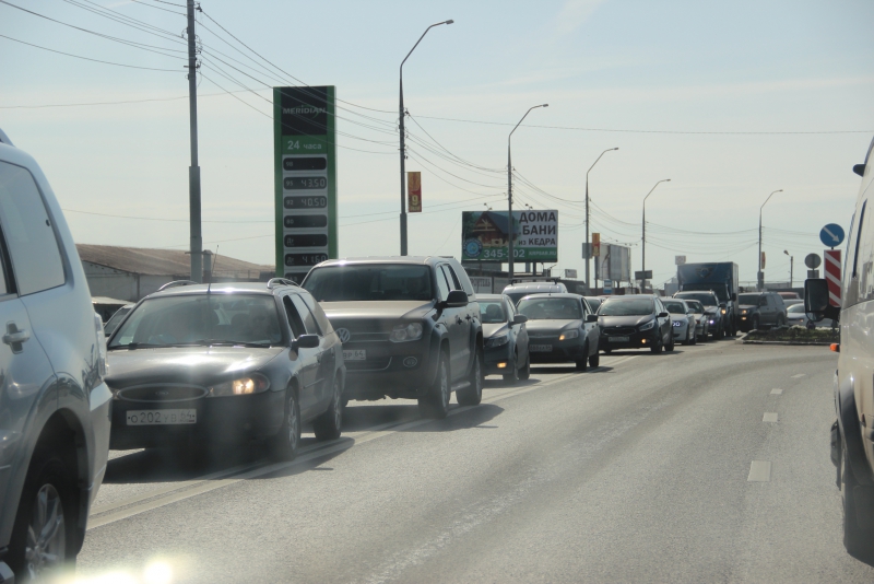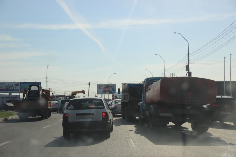 После аварии они почти полностью заняли обе полосы в сторону Усть-Курдюма. Из-за этого другие участники движения объезжают их по обочине или по встречной полосе. Пробка образовалась до улицы Аэропорт.