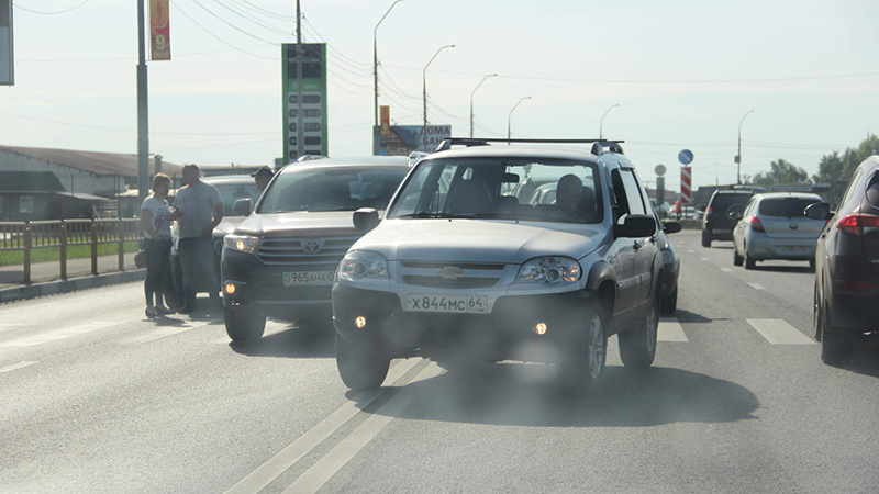 На Усть-Курдюмском шоссе столкнувшиеся кроссоверы образовали пробки