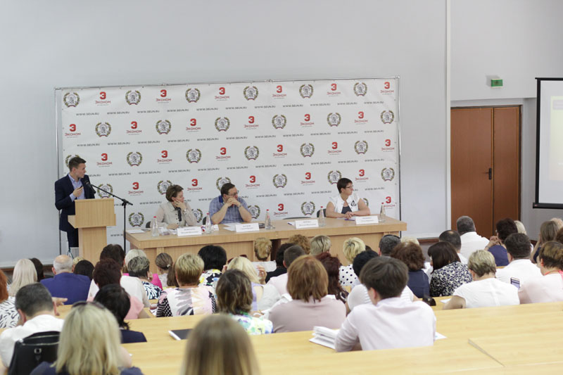 В конструктивной обстановке представители высшей и средней школы подвели итоги совместной работы в 2017-2018 учебном году, проводимой в рамках образовательного проекта «ЭКОНОМ – школе», наметили пути расширения сотрудничества, определили приоритетные направления профориентационной и просветительской деятельности.