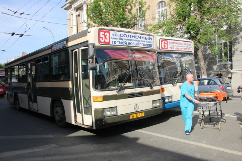 В центре Саратова завершилась спасательная операция на месте столкновения двух автобусов. Спасатели на реанимобиле повезли в больницу пожилую женщину. Об этом сообщает корреспондент «Четвертой Власти» с места событий.